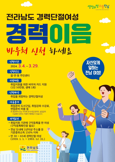 ![]() 화순군, 취업을 준비하는 구직여성에게 경력이음 바우처 지원 |