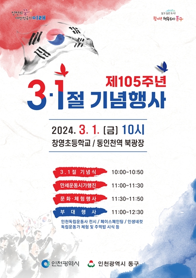 또한, 만세운동 시가행진에 이어 동인천역 북광장에서는 문화·체험행사가 마련됐다. 안중근 의사의 일대기를 뮤지컬로 연출한 뮤지컬 ‘영웅’이 선보이는가 하면, 나라 사랑 손도장 대형 태극기 만들기, 인생네컷 등 다양한 체험 부스가 열려 시민과 시민단체가 직접 참여하고 즐기는 체험행사로 참석자들의 높은 호응이 이어졌다.