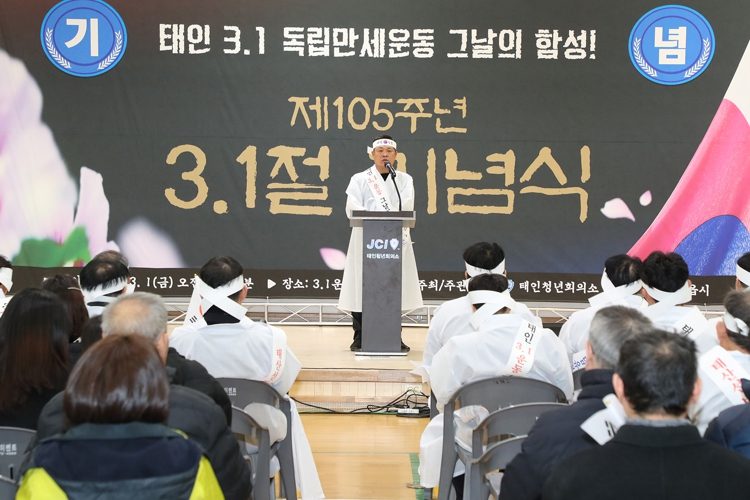 이후 태인초등학교에서 열린 행사는 태인 3·1운동 유가족 대표 윤대식 씨의 기미독립선언서 낭독을 시작으로 3·1절 노래 제창, 만세삼창 등이 진행됐다. 더불어 손태극기 나눔행사, 태극기 사랑 캠페인 등 부대행사도 있었다.