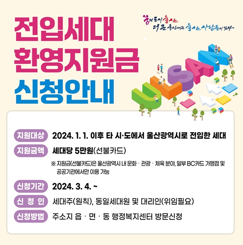 ![]() 울산시, 전입세대 환영지원금 지원 |
