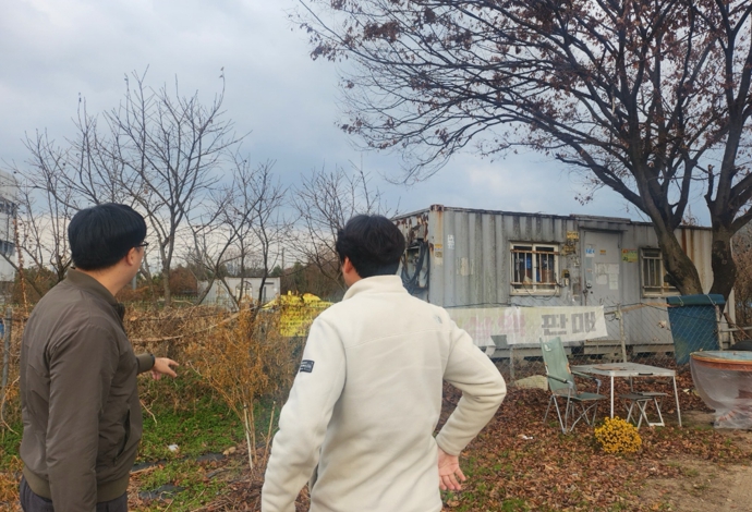 ![]() 구청 담당 공무원이 농번기를 앞두고 개발제한구역 내 불법행위 특별단속을 실시하고 있다. |