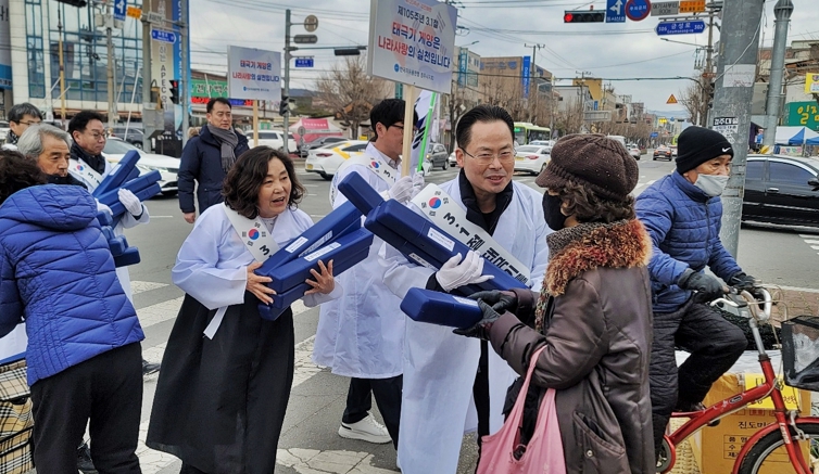 이밖에도 한국자유총연맹 및 새마을회, 읍면동 자생단체에서는 태극기를 나눠주며 태극기의 의미와 올바른 국기 게양 방법을 알려주는 행사도 병행했다.