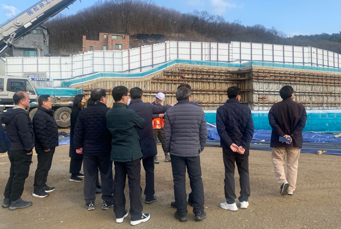 ![]() 민간 감시원들이 지난 14일 역북동 아파트 공사 현장 교육을 받고 있다. |