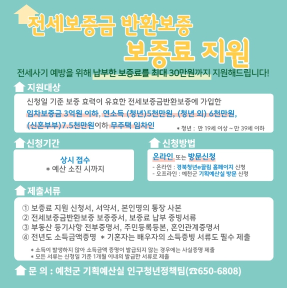 ![]() 예천군, 전세보증금반환보증 보증료 지원 |