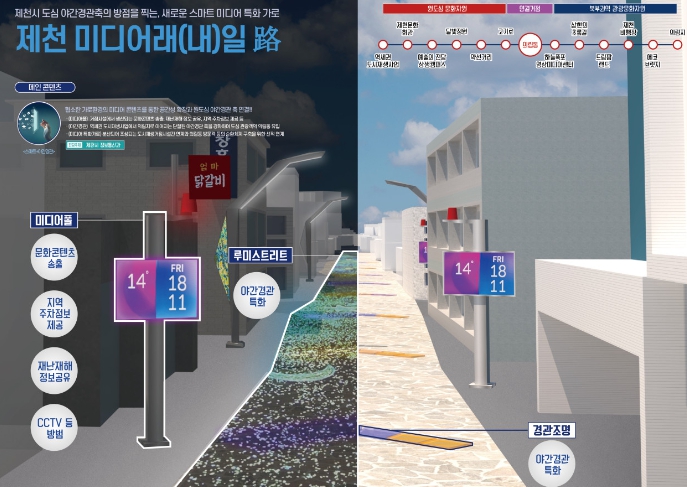 또한, 제천 미디어내일센터와 의림동 버스터미널 주변으로 미디어 매체를 활용한 미디어 특화거리를 조성함으로써 어둡고 침침했던 골목을 활력 넘치는 거리로 만들고, 목재친화도시 사업과 연계해 사업의 시너지 효과를 일으킬 것으로 보인다.