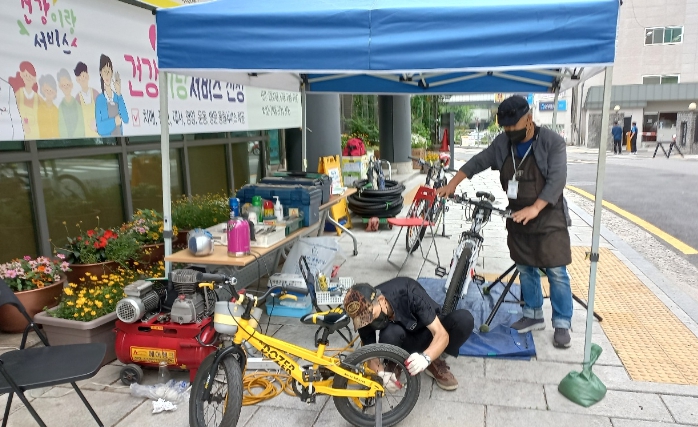 평소 이용하던 자전거가 고장 나더라도 마땅히 수리할 곳이 없어 방치하는 주민들을 위해 전문가가 가까운 관내 동주민센터로 찾아가 무상 수리, 정비해 주는 행정 서비스다.