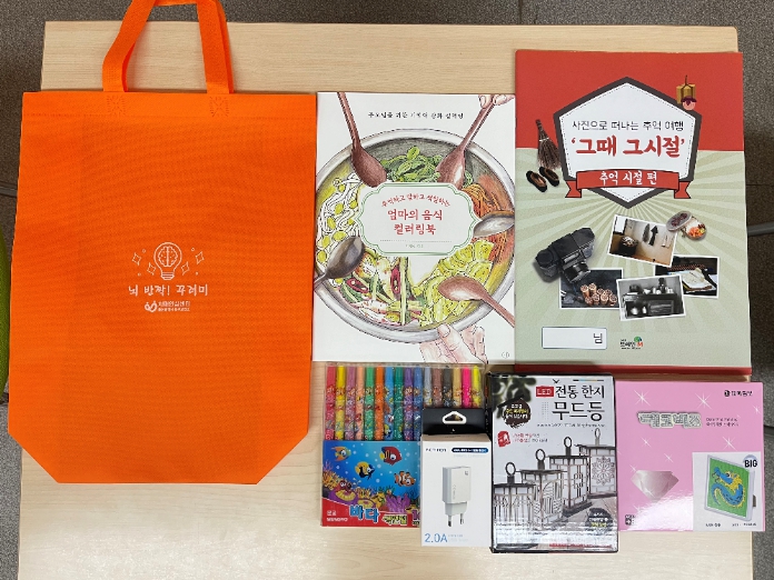 꾸러미는 치매 중증화 예방에 도움을 줄 수 있도록 인지증진 및 소근육 발달을 위한 무드등 만들기, 보석십자수, 인지워크북, 컬러링북, 색연필 등으로 구성됐다.