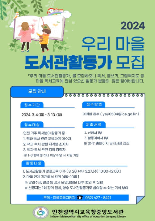 올해는 활동 분야를 도서관 및 독서 분야로 한정하고, 도서관을 중심으로 한 마을 독서교육을 전개할 수 있는 활동가를 모집한다.