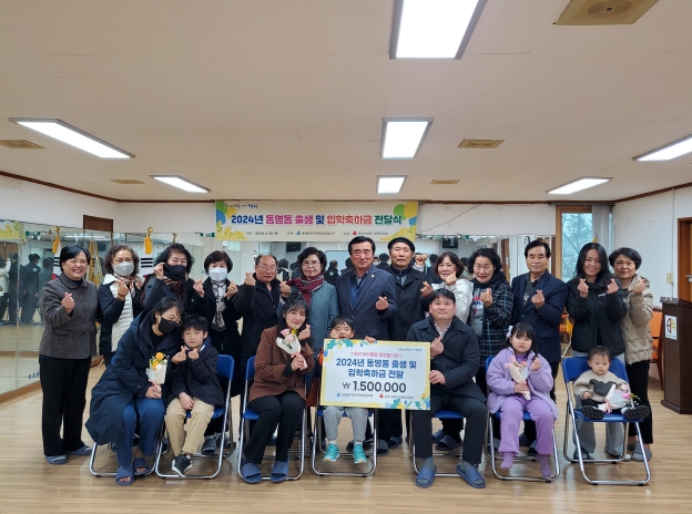 이날 행사에서는 동명동 지사협 회의를 통해 선정된 저소득 취약계층 출산가정 1가구와 초등학교 입학 예정 4가구가 참석한 가운데 축하금 30만 원을 전달하고 마을공동체의 경사를 축하하는 소통의 시간을 가졌다.