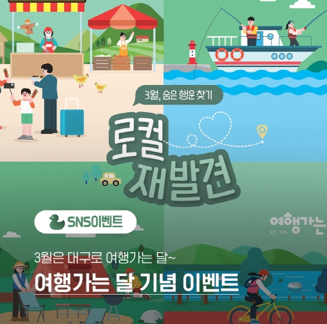 여행가는 달 기념 SNS 이벤트는 대구관광 SNS채널 인스타그램을 통해 3월 1일부터 3월 20일까지 운영되며, 참여 방법은 올해 오픈하는 대구 여행지를 맞히는 초성 퀴즈에 참여하거나, 직접 새로운 대구 여행지를 댓글로 추천하여 응모할 수 있다. 참가자를 대상으로 추첨을 통해 다양한 경품을 지급할 예정이다. 자세한 내용은 대구관광 비짓대구 인스타그램에서 확인 가능하다.