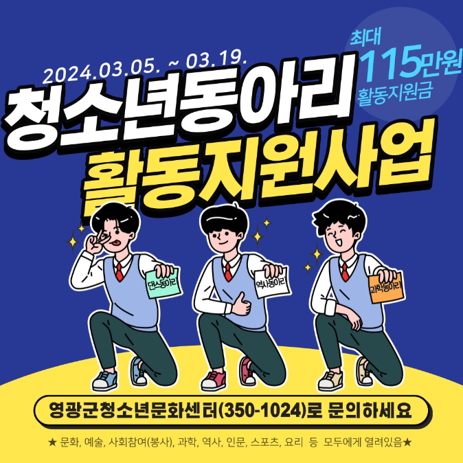 ![]() '2024년 영광군 청소년동아리 활동 지원 사업' 참여동아리 모집 |