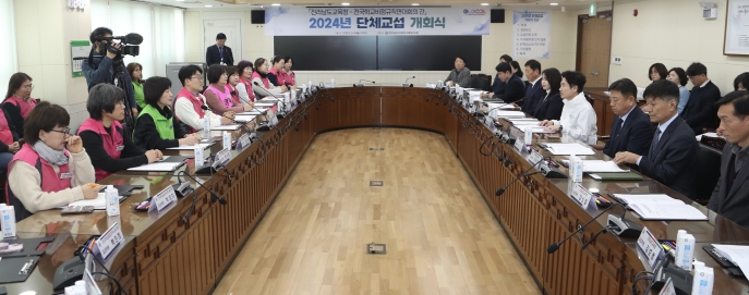김대중 교육감은 인사말을 통해 “노사 각자의 목표와 이익을 존중하는 성공적인 교섭이 되기를 희망한다.”면서 “오는 5월 여수세계박람회장에서 열리는 ‘대한민국 글로컬 미래교육박람회’에도 많은 관심을 부탁드린다.”고 말했다.