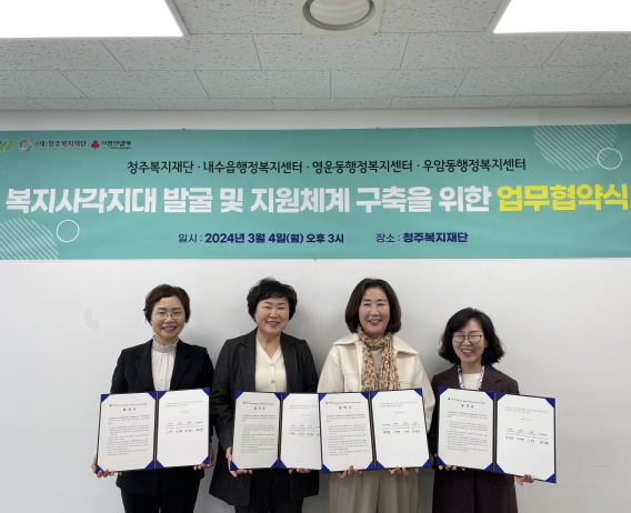 ![]() 청주복지재단·내수·영운·우암, 복지사각지대 발굴 및 지원을 위한 업무협약 |