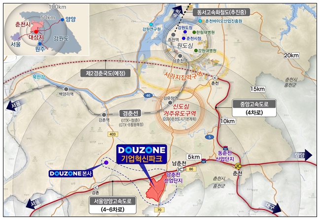 특히, 오늘 김진태 지사는 기자간담회를 통해 “기업혁신파크 지정요건으로는 부지가 최소 50만㎡인데, 춘천시는 7배가 넘는 360만㎡의 부지를 확보했으며, 남춘천 IC와 3분 거리로 수도권과 탁월한 접근성과 건실한 앵커기업인 더존 IT까지 보유하고 있다” 고 강조했다.