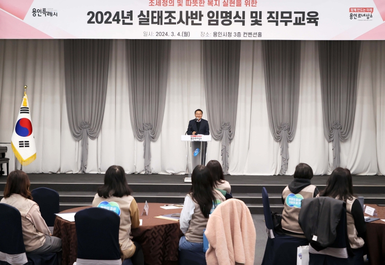 ![]() 류광열 용인특례시 제1부시장이 '체납관리 실태조사반' 임명식에 참석해 인사말을 하고 있다 |