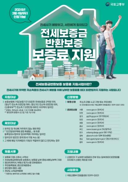 ![]() 전세보증금 반환보증 보증료 지원 포스터 |