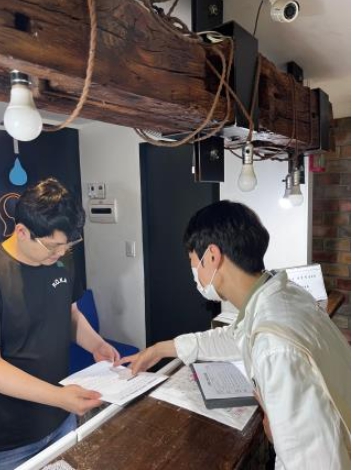 ![]() 공중위생업소 지도점검을 실시하고 있는 모습 |