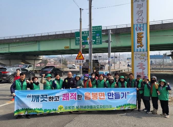 새마을협의회는 음봉면을 오가는 진출입로 대청소를 통해 오는 3월 말일에 있는 음봉면 벚꽃축제 등을 준비하는 동시에 깨끗한 이미지 제고에 힘썼다.