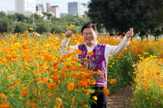 ![]() 작년 가을 황하코스모스가 만개한 중랑천을 방문한 이필형 동대문구청장 |