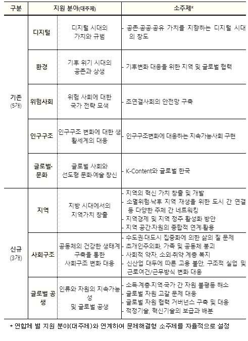 ![]() 인문사회 융합인재양성사업(HUSS) 연합체 지원 분야(상세) |