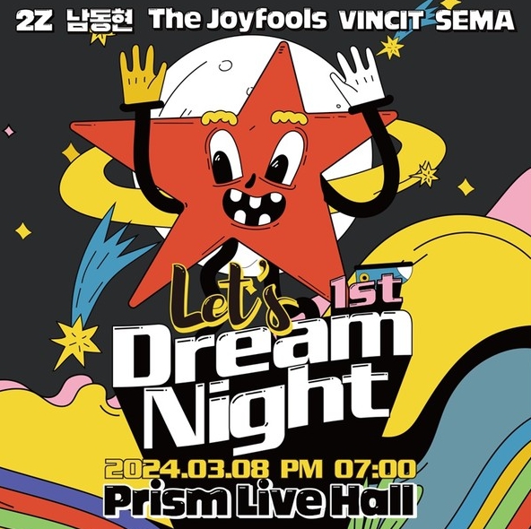 ‘렛츠 드림 나이트’의 첫 번째 스타트 라인업은 한국 록씬의 최고 기대주로 떠오르고 있는 4인조 청춘 록앤롤 밴드 The Joyfools(더 조이풀스)와 수려한 비주얼과 날로 성장하는 실력으로 국내외에서 주목받고 있는 밴드 2Z, ‘프로듀스X101’ 출신 싱어송라이터 남동현, 여성 보컬이자 기타리스트 지아가 이끄는 록밴드 빈시트, 그리고 강렬한 카리스마의 무대 매너를 선보이는 SEMA 등 총 5팀이 출연해 화려한 무대를 선보인다.