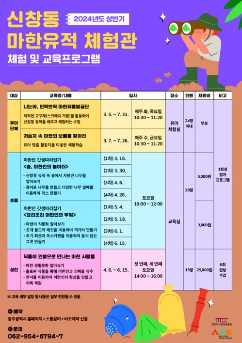 최경화 광주역사민속박물관장은 “마한유적체험관에서 하는 프로그램을 통해 지역 역사와 문화를 쉽고 흥미롭게 이해할 수 있도록 준비했다”며 “앞으로도 시민들이 다양한 체험, 교육, 행사에 참여할 수 있는 프로그램을 개발하는데 최선을 다하겠다”고 말했다.