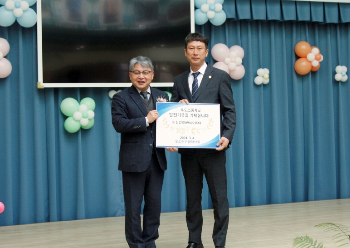 우도면 연합청년회에서는 매년 입학식에서 초등학교 신입생에게 각 10만 원의 장학금을 지급해오고 있다. 올해도 윤송관 우도면 연합청년회 회장님이 직접 입학식에 참여하여 교장 선생님께 장학 증서를 기탁했다.