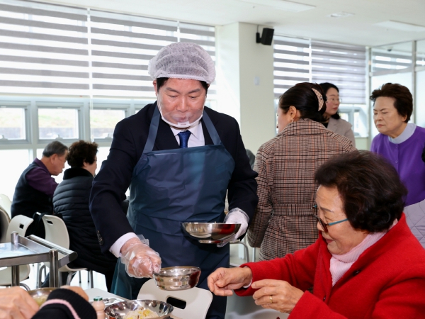 도양노인건강복지타운 노인복지관 경로식당 운영 첫날에는 공영민 군수가 어르신 100여 명을 대상으로 직접 배식 봉사를 하면서 어르신들과 따뜻한 온기를 나눴다.