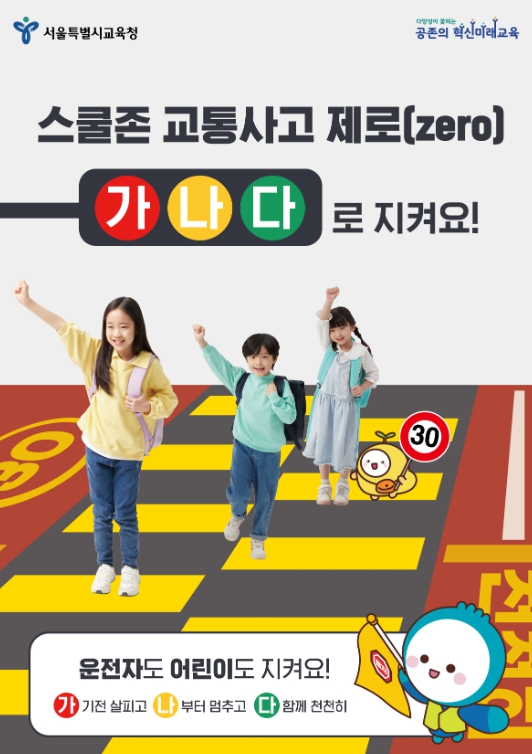 이번 캠페인은 3월 6일부터 4월 7일까지 한 달간 서울시교육청 대표 캐릭터인 자라나, 열리미와 함께 진행되며, 어린이와 운전자 모두 쉽게 기억할 수 있는 “가나다”로 표현하여 교통안전 의식을 높이고 실질적인 참여를 유도하기 위해 마련됐다.