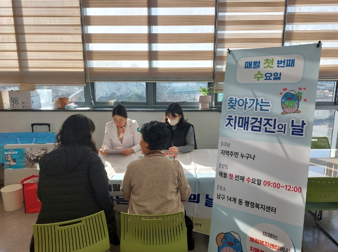 이재혁 남구보건소장은 “초고령사회 진입으로 인해 치매인구 증가가 예상됨에 따라 치매 사전예방과 조기발견의 중요성을 강조하고, 찾아가는『치매검진의 날』운영이 지역사회 치매관리에 큰 도움을 줄 것으로 기대한다.”라고 밝혔다.
