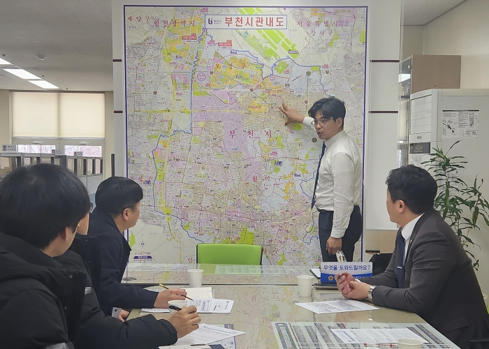 논의에 앞서 박상현 의원은 부천시 관내도를 참고하여 현재 오정지역주민들의 버스 이용에 관한 어려움과 해결방안을 제시했다.