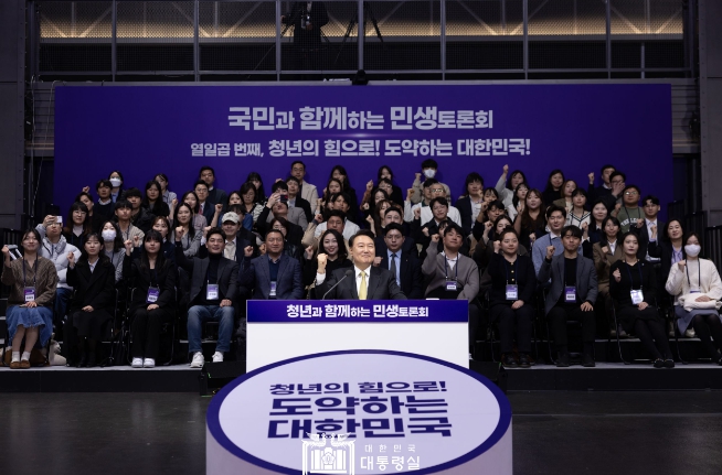 ![]() 3월 5일 윤석열 대통령은 경기도 광명시 소재 아이벡스 스튜디오에서 ‘청년의 힘으로 도약하는 대한민국’을 주제로 열일곱 번째 「국민과 함께하는 민생토론회」를 개최했다. |