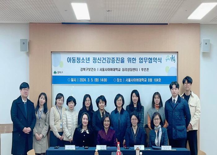 이번 협약을 통해 서울사이버대학교 심리상담센터는 강북구보건소에서 아동청소년들이 심리치료를 위해 연계될 경우 심리검사와 치료서비스 비용을 최대 30%까지 감면하기로 했으며, 정신건강 고위험 증상을 보이는 아동청소년을 조기에 발굴하고 치료 체계로 유입하여 만성화를 예방하는 데에도 강북구보건소와 상호 협력키로 했다.