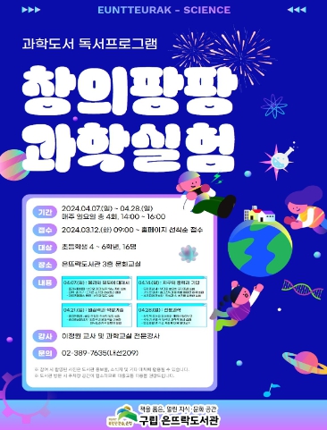 과학 도서 독서프로그램은 우수과학 인증 도서를 활용한 독서프로그램으로, 과학 탐구와 창의력 자극을 위해 과학 도서를 읽고 간단한 과학실험을 한다.
