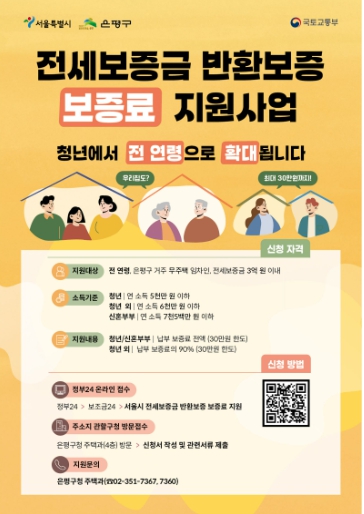 한편 지난해 서울시 최초로 전 연령층을 대상으로 시행했던 ‘은평구 임대차보증금 반환보증 보증료 지원사업’은 이 사업의 지원 대상이 전 연령층으로 확대돼 올해에는 실시하지 않는다.