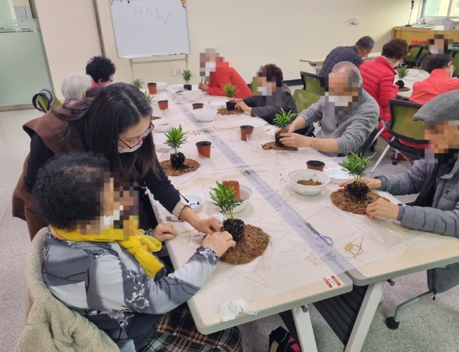 쉼터의 운영 기간은 3월부터 11월까지로 주 2회/3시간씩 작업치료, 원예치료, 현실인식훈련 등 다양한 프로그램으로 구성되어 있으며, 대상자의 기억력, 집중력 및 지남력 등 인지능력을 강화하고 정서적 안정 도모 및 스트레스 감소를 목적으로 한다.