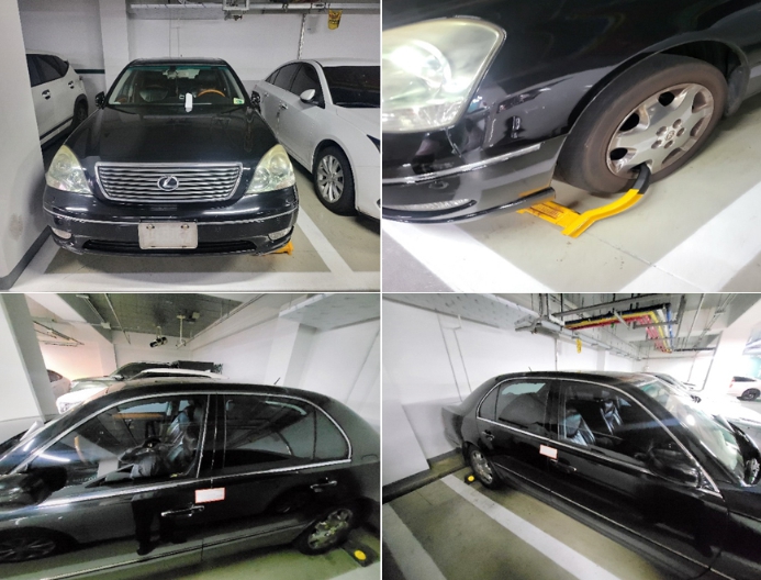 ![]() 시가 공동주택 주차장에서 대포차량을 발견하고 실 사용자 확인을 위해 번호판을 영치하고, 족쇄 설치, 압류봉인지를 부착한 모습 |