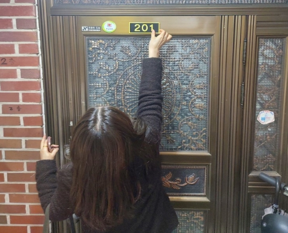 ![]() 상세주소판을 부착하는 모습 |