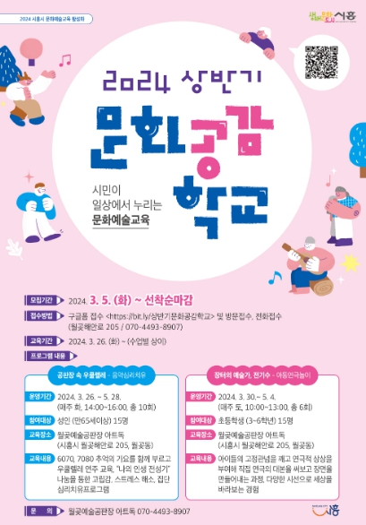 ![]() 시흥시 문화공감학교, 상반기 문화예술교육 참가자 모집 |