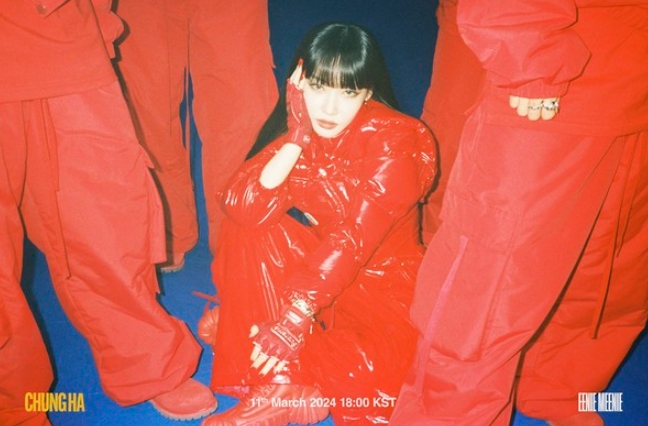 공개된 사진 속 청하는 올 레드 스타일링을 완벽하게 소화하며 시선을 사로잡았다. 레더 재킷과 팬츠, 글로브 등을 매치해 스포티하고 시크한 매력을 발산했으며 의상과 대비되는 흑발 헤어로 청하만의 강렬한 포스를 극대화했다.