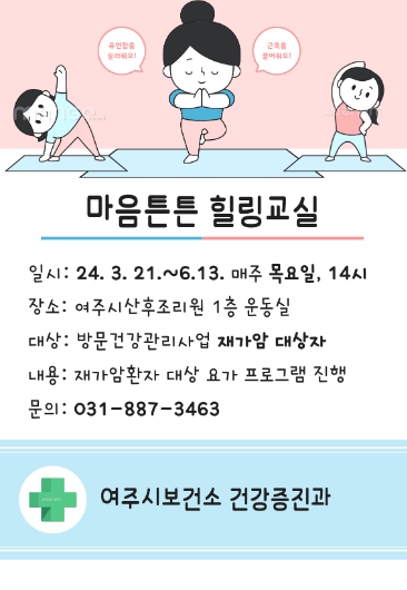 ![]() 여주시보건소, 재가암환자관리 '마음튼튼 힐링교실' 운영 |