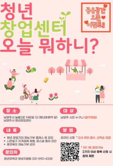 ![]() 남양주시 청년창업센터, ‘3월 공유공간 오픈 기념 이벤트’ 실시 |