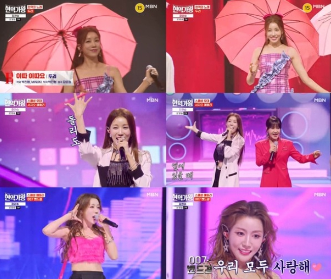 두리는 지난 5일 밤 방송된 MBN 트로트 예능프로그램 ‘현역가왕 갈라쇼-현역의 노래’ 2회에 출연했다.