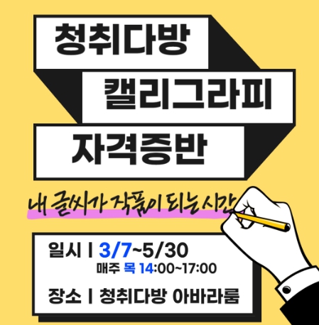![]() 청취다방‘캘리그라피 1급 자격증반 홍보문 |