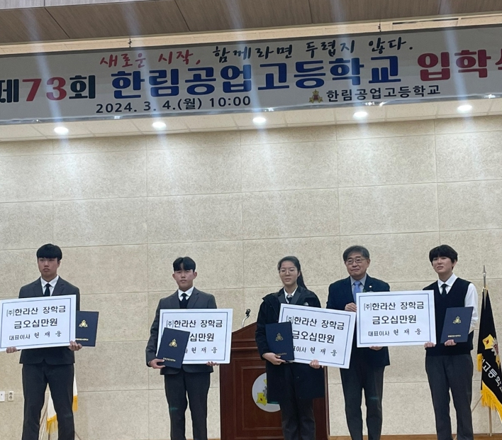 이날 행사에서는 한림공업고등학교 총동창회에서 학교발전에 이바지하는 학생에게 장학 증서와 100만 원의 장학금을 수여했으며, 우수한 성적으로 입학한 학생 1명에게 한명회 장학금 100만 원과 장학 증서를, 4명에게 ㈜한라산 장학금 각 50만 원과 장학 증서를 수여했다.