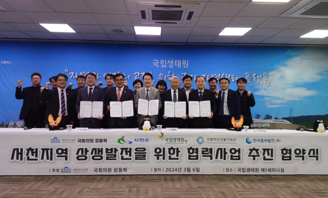 이날 협약식에는 김기웅 서천군수을 비롯해 장동혁 국회의원, 조도순 국립생태원장, 최완현 국립해양생물자원관장, 김호빈 한국중부발전사장 등 기관별 관계자들이 참석해 뜻을 모았다.