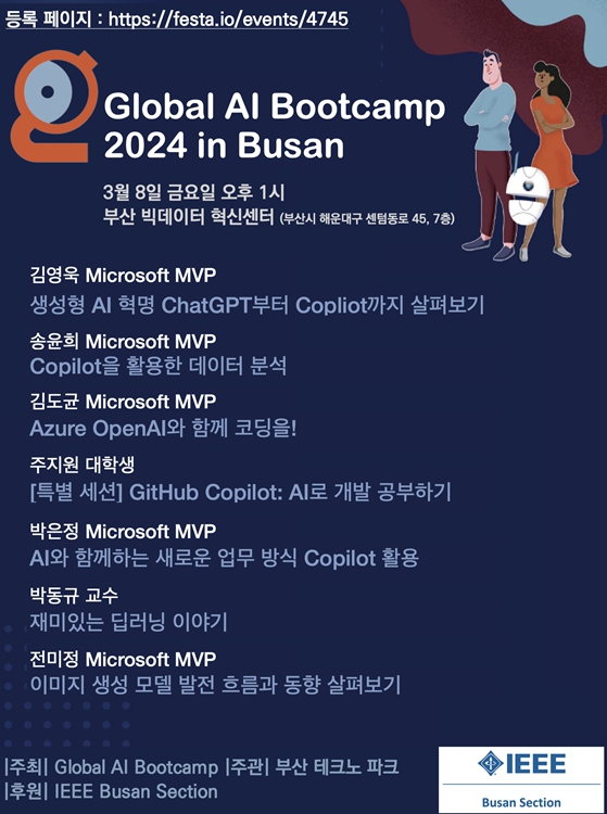 시민 누구나 행사에 참가할 수 있으며, 참가 등록은 '2024 글로벌 AI 부트캠프 인 부산' 누리집에서 가능하다.