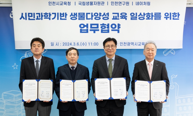 ![]() 인천광역시교육청, 국립생물자원관·인천연구원·네이처링과 생물다양성교육 업무협약 체결 |