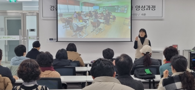 ![]() 강진자연생태연구회 회원들이 교육에 참여하고 있다. |