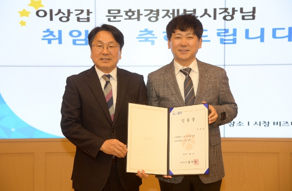 강기정 광주광역시장은 이날 시청 비즈니스룸에서 이상갑 문화경제부시장에게 임명장을 전달했다.